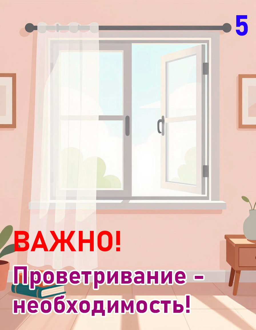 5. Регулярное проветривание. Свежий воздух снижает концентрацию вирусов в закрытом помещении.